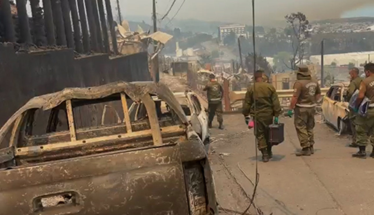 Carabinera está grave luego de quemarse el 25% de su cuerpo tras auxiliar a víctimas de incendios forestales